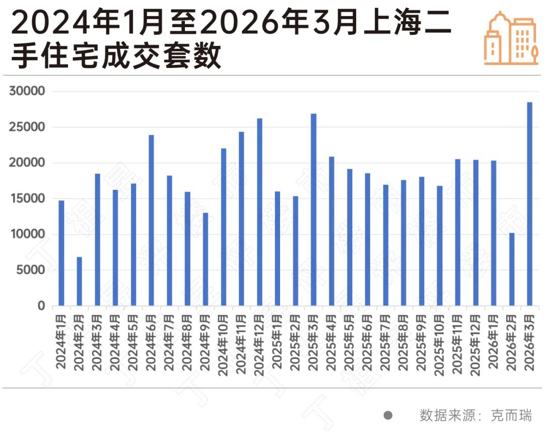 克而瑞数据显示,2026年3月上海二手住宅成交28492套,在2025年3月较高基数背景下同比增长6%,成交套数创近5年新高。