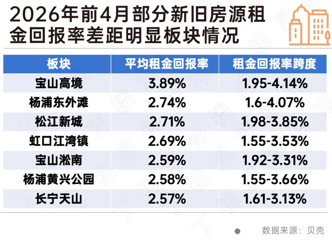 1、上海二手房租金回报率确实出现明显上升趋势,但主要受建筑年份20年以上的“老房子”带动。