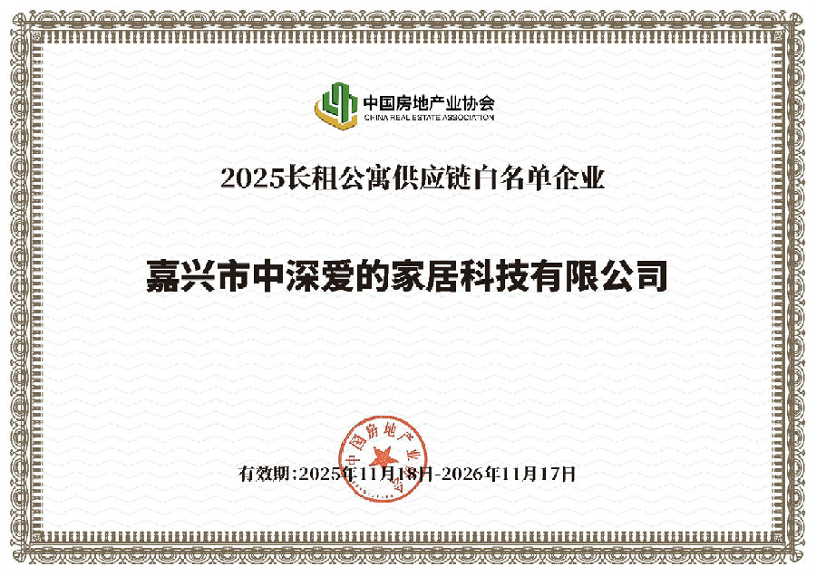 会上发布了《2025长租公寓供应链白名单(第二批)》,嘉兴市中深爱的家居科技有限公司凭借技术创新、提供人、车、房、物的系统软件、同时在硬件终端、智慧服务等综合管理解决方案以及丰富的长租公寓建设经验入选长租公寓供应链白名单。