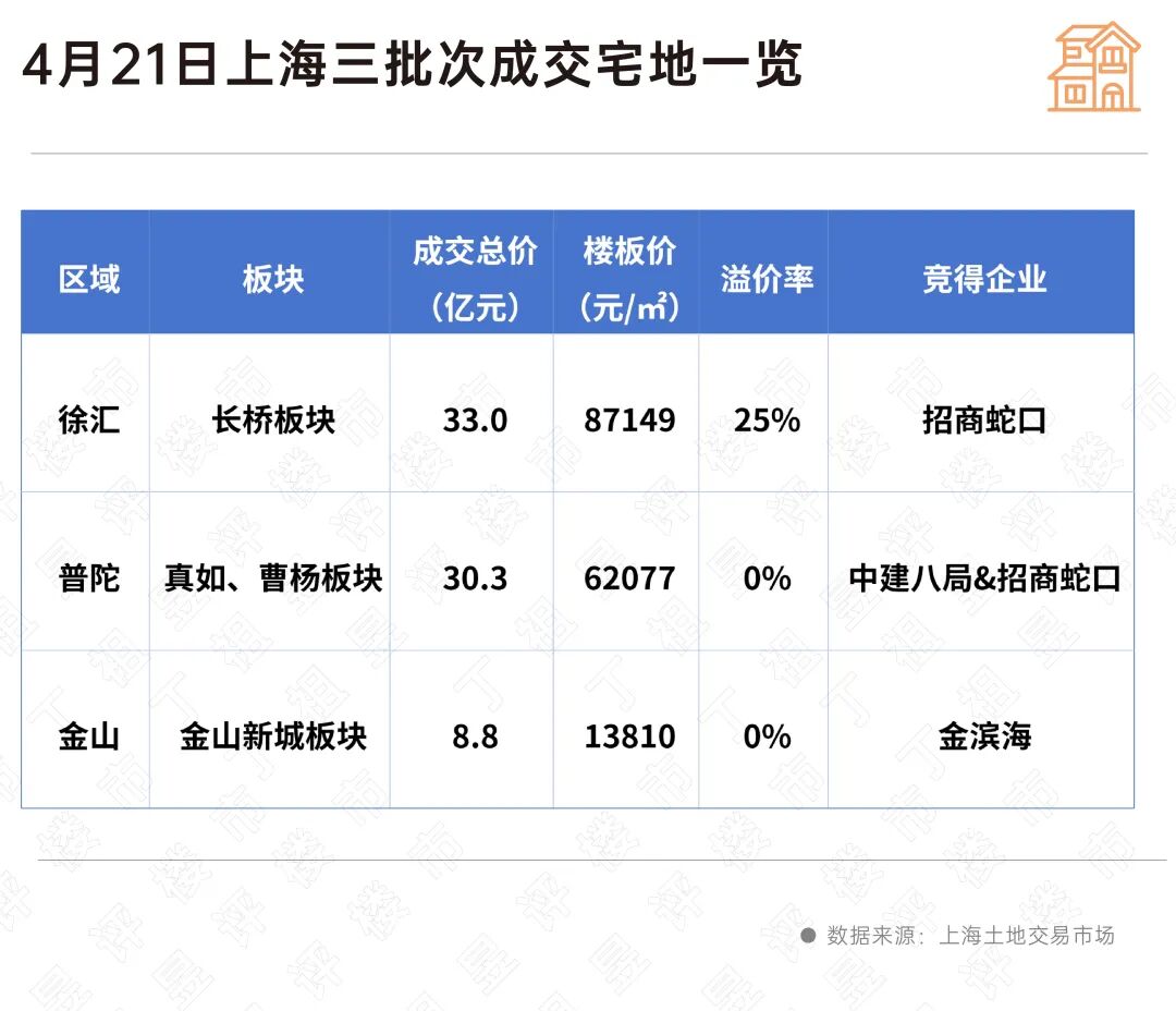 就在今天(21日)上午,上海三批次土拍落锤,三宗涉宅地块收金72亿元,前三批次累计成交金额199.4亿元。