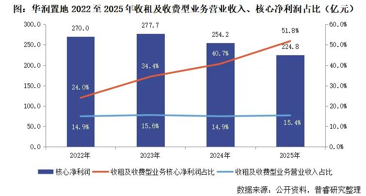 华润置地的非房业务(其战略中的第二、三条增长曲线)展现出“轻重并举、全面协同”的稳健模式。其发展模式主要分为两部分:一是经营性不动产收租型业务(重资产),以购物中心为核心,辅以写字楼和酒店;二是轻资产管理收费型业务,包括物业管理(华润万象生活)、资产管理(资管规模超5000亿元)、代建、租赁住房、文体运营等。2025年,这两部分业务贡献核心净利润达116.5亿元,占公司总核心净利润的51.8%,首次过半。这主要得益于该板块高达71.8%(经营性不动产)和35.5%(轻资产管理)的毛利率,显著对冲了开发业务毛利率下滑的影响。企业预计“十五五”末非房业务营收占比将接近30%,利润贡献将稳定在60%以上。