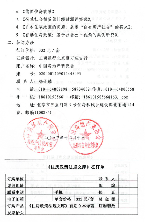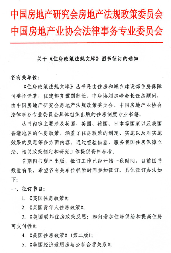 关于《住房政策法规文库》图书征订的通知
